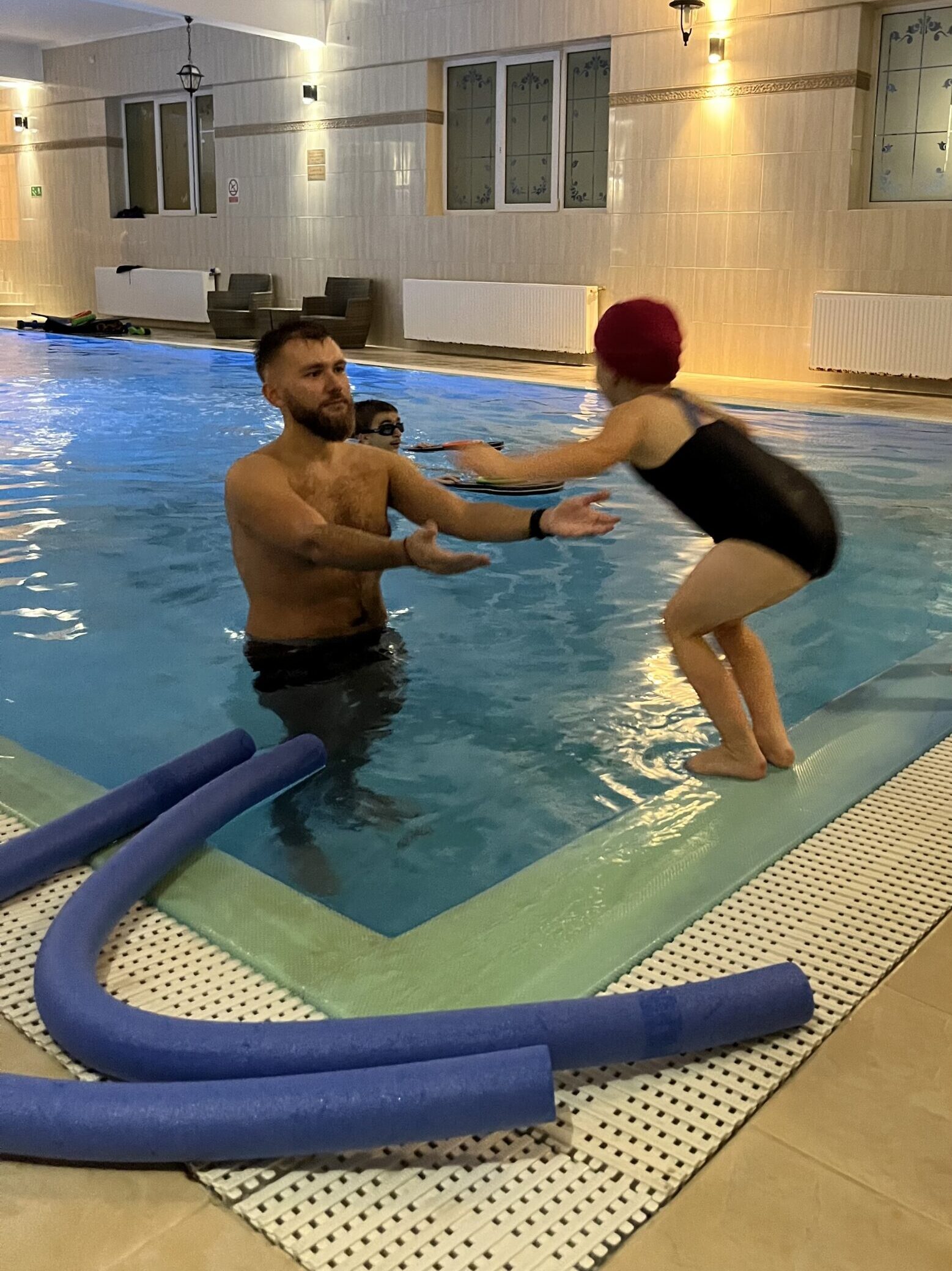 Prowadzi zajęcia pływackie od zera – oswajające z wodą, poprzez naukę pływania, jak i doszkalające.